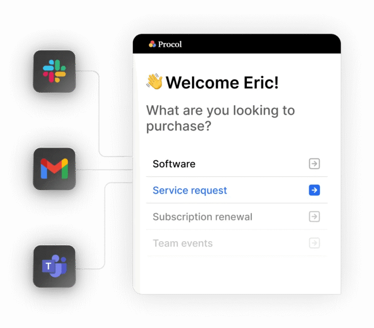 Simplify and automate procurement requests with an intelligent intake bot for faster adoption.