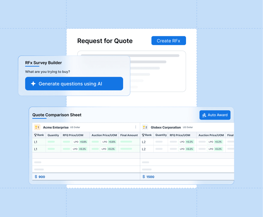 Handle price volatility with automated sourcing and instant reverse auctions. Run multiple RFQs, negotiate in real-time, and auto-generate QCS to expedite decisions, making it ideal for bulk and routine purchases.