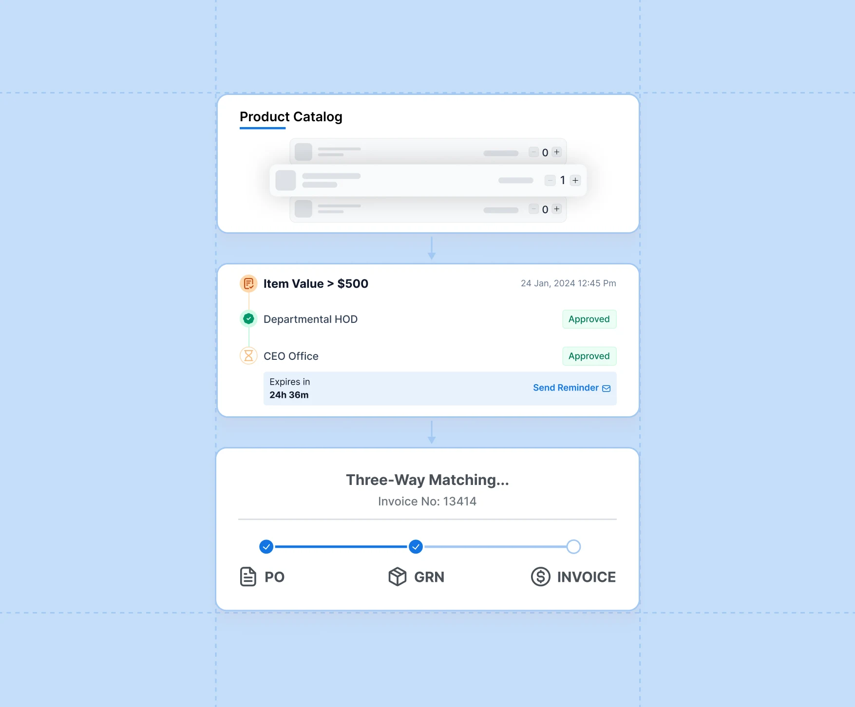 Suppliers can upload invoices, ASNs, and compliance documents through a dedicated portal, allowing you to track every invoice from submission to payment in real time. Touchless 3-way matching reduces errors and duplicate entries, ensuring accounts payable processes flow smoothly and are audit-ready.