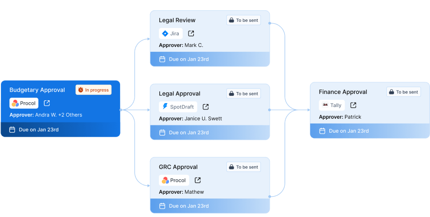 Procurement orchestration platform that connects people, processes, and systems across organizations for better collaboration, complete spend visibility, and unified experience.
